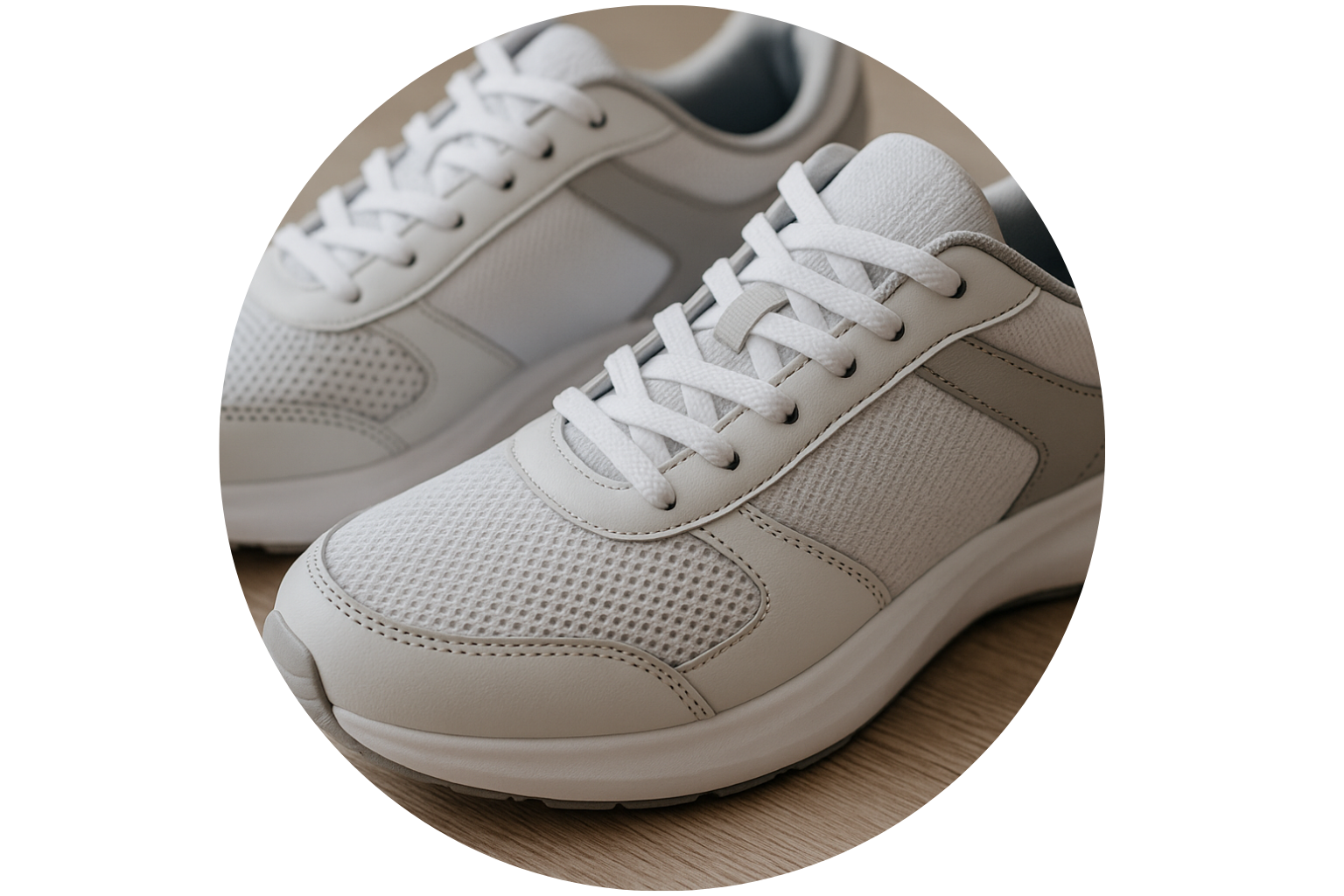 Lavado manual según material (mesh, cuero, nobuk) y blanqueamiento de suela opcional.